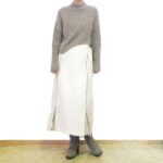 冬コーデを明るく更新♪オフホワイトのボア切替えロングスカート&50代からのコーデ