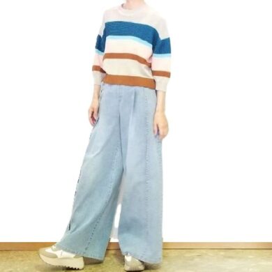 ワイドなのにスッキリ♪ウォッシュデニムのバギーパンツ&50代からのコーデ