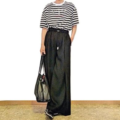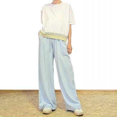 大人のデニムは質感で選ぶ、夏まで着回せるセルロースデニムのワイドパンツのコーデ