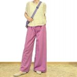 50代からのコーデ♪軽量ニットのぶりっ子プルオーバーとブラックデニムのワイドパンツ&ローズグレーの下着