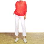 大人の夏を鮮やかに着回し♪赤橙のサマーニットプルオーバーをコーディネート
