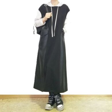 胸元レイヤードがお洒落な大人のジャンパースカート & 50代からのコーデ