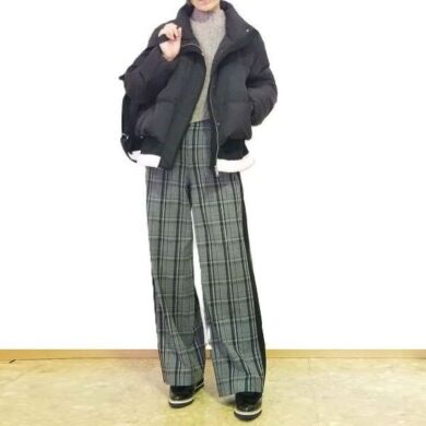 サイドラインでスタイルアップ!BLUE FRONCEのチェック柄セミワイドパンツ&50代からのコーデ