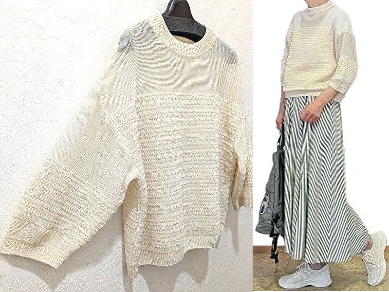 綿100%なのに麻の質感♪ギマ加工のサマーニットで夏を快適にコーディネート