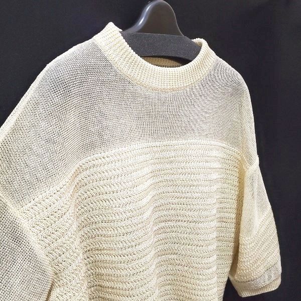 麻のような質感と上品なシアー感を楽しめる、大人可愛いサマーニットです。
