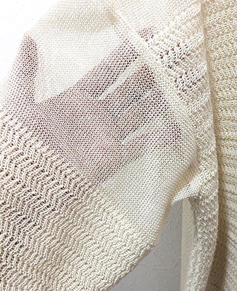 胸元から肩、お袖にかけて編地を変えてシアーに