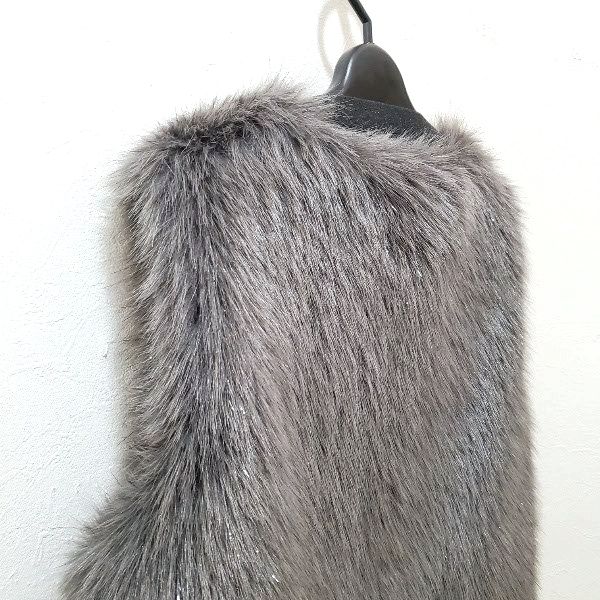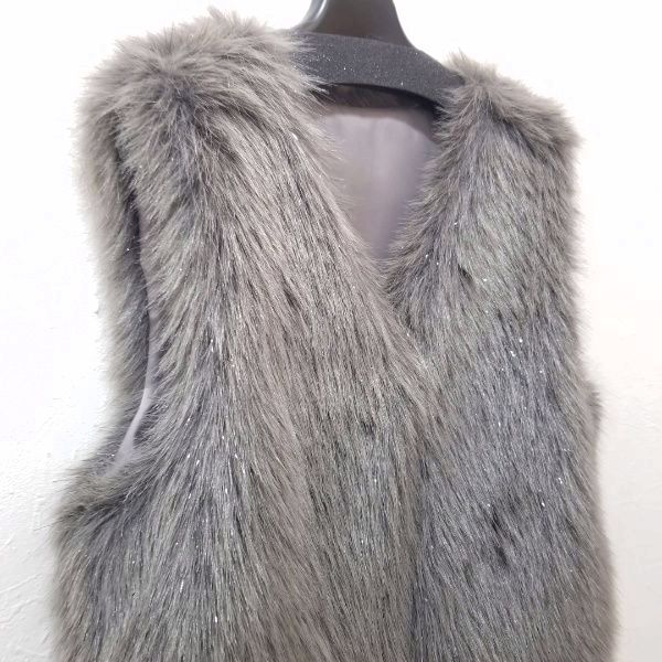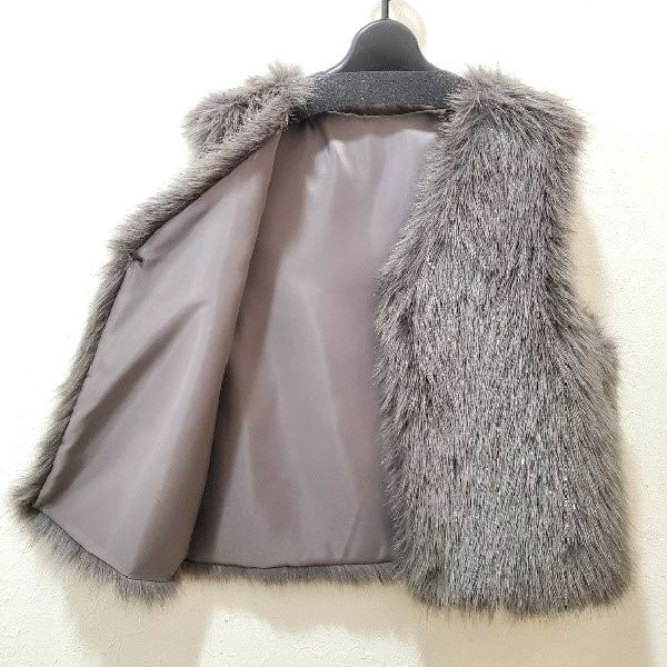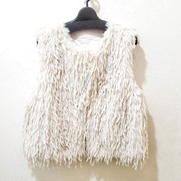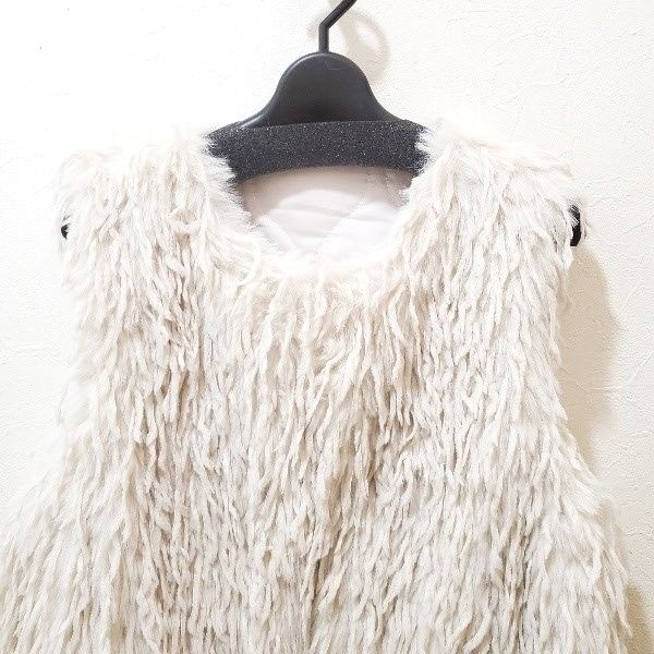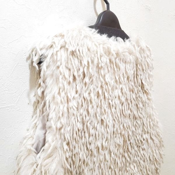 ふわふわのフリンジファーが可愛い、ラウンドカラーのエコファーベストです。