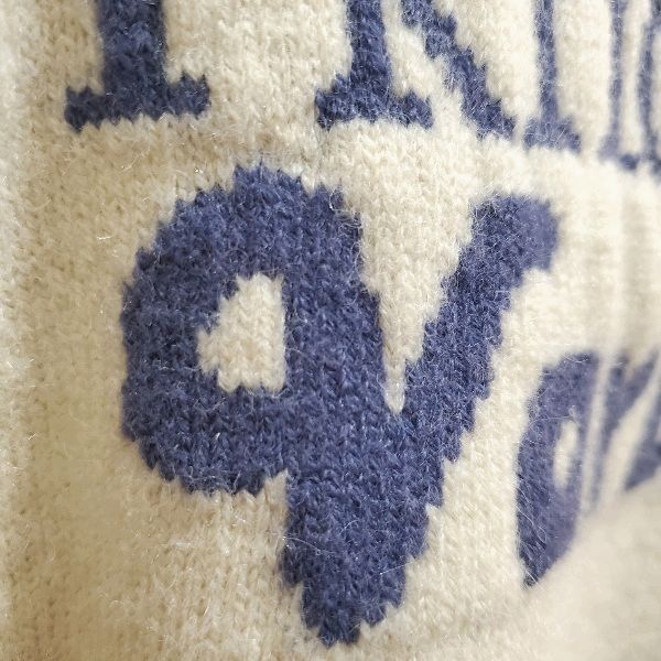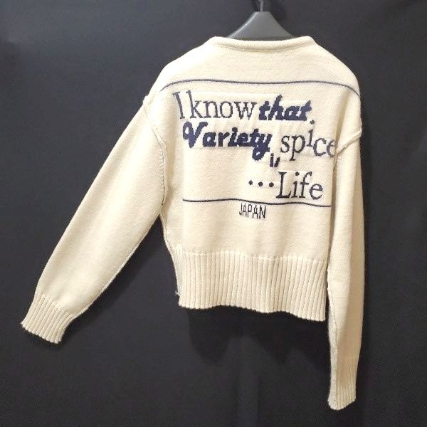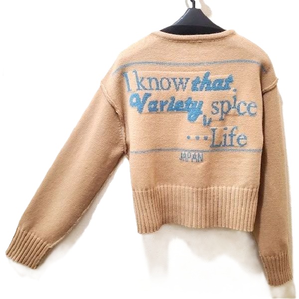 ふんわりニットに背中のロゴが可愛い、ショート丈のカーディガンです。