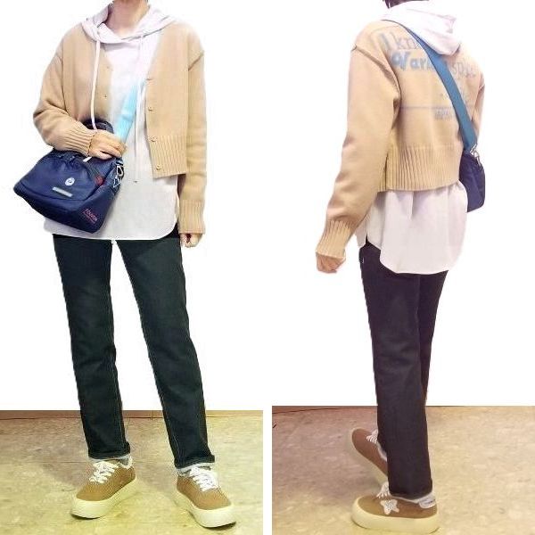 後も可愛いMiaのショートカーディガンで大人の冬コーデ&小柄な方へのパンツのシルエット変更