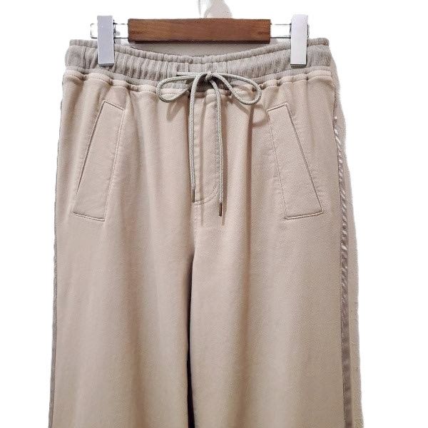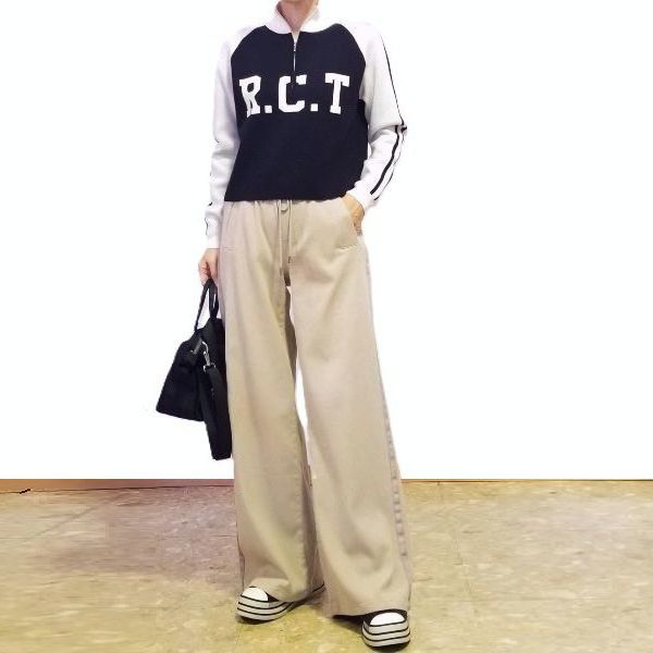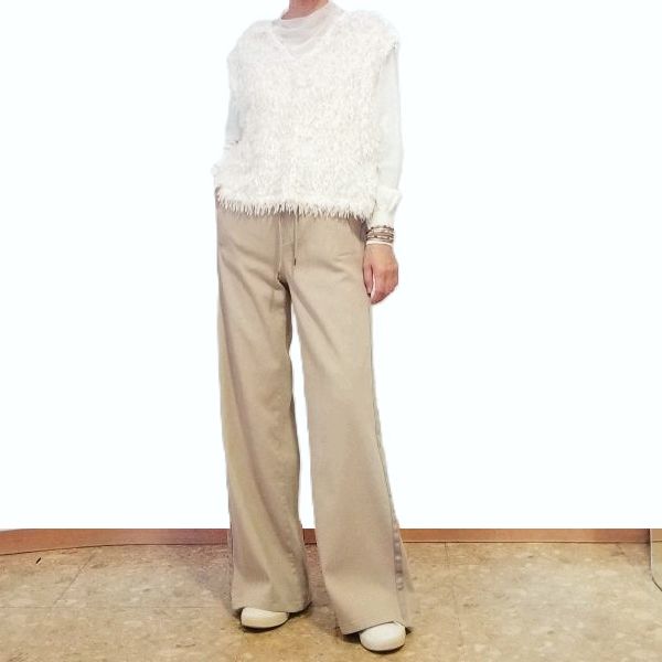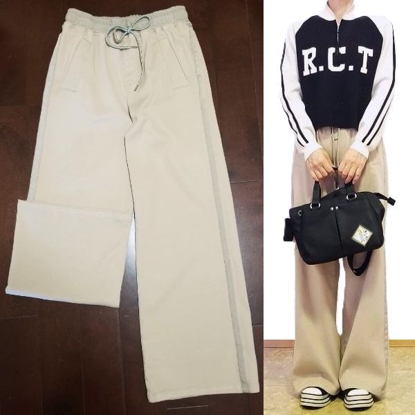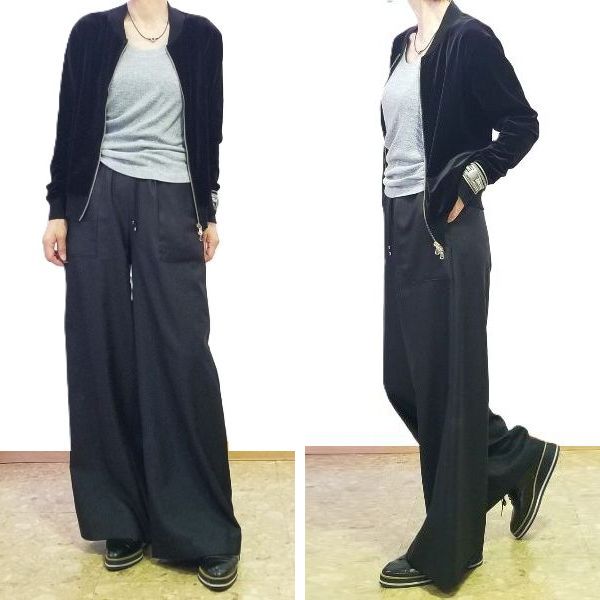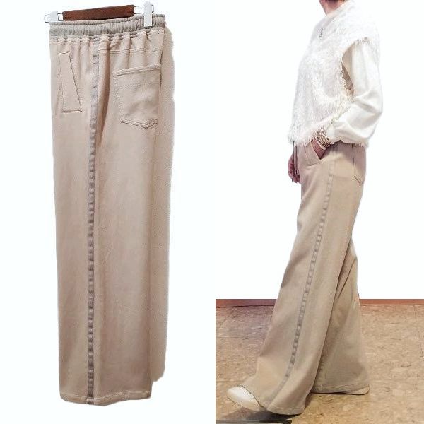 若干の裾広がりと落ち感のある裏起毛素材が綺麗なシルエットを作る、綺麗系イージーパンツです。