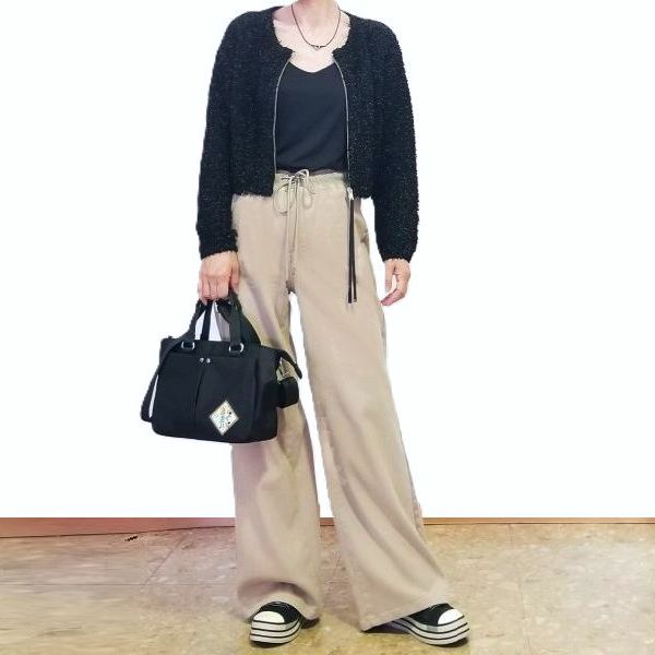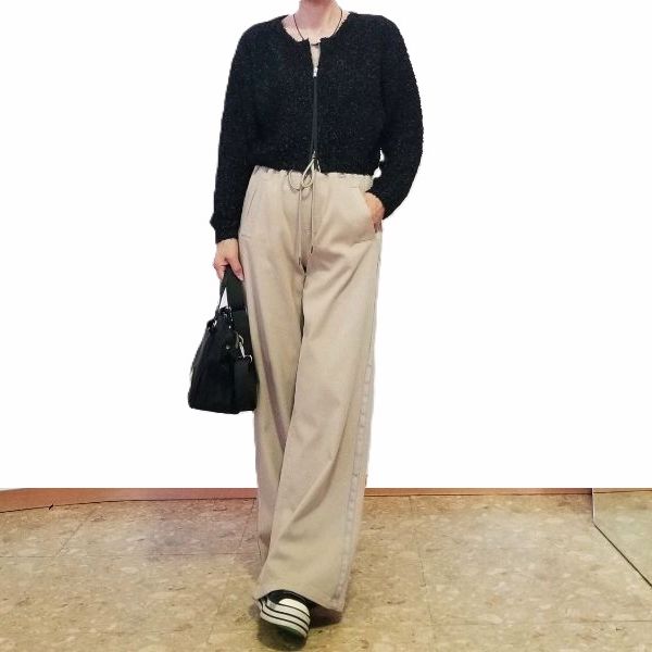 綺麗なシルエットのサイドライン裏起毛パンツ & 50代からのコーデ