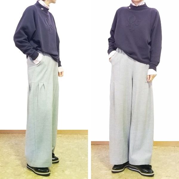 サイズは38サイズで、ウエストゴム&ダンボールニットの素材感ですので許容があります。ウエストゴム上がりを調整しながら、7号から11号位の方に穿いて頂いています。