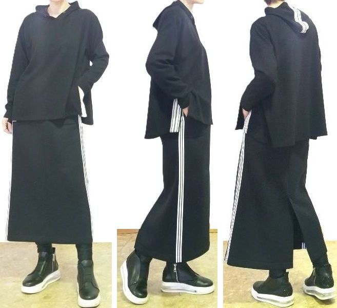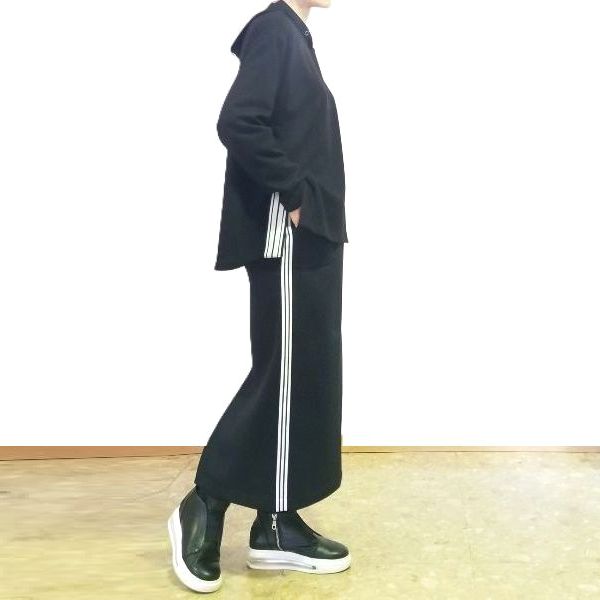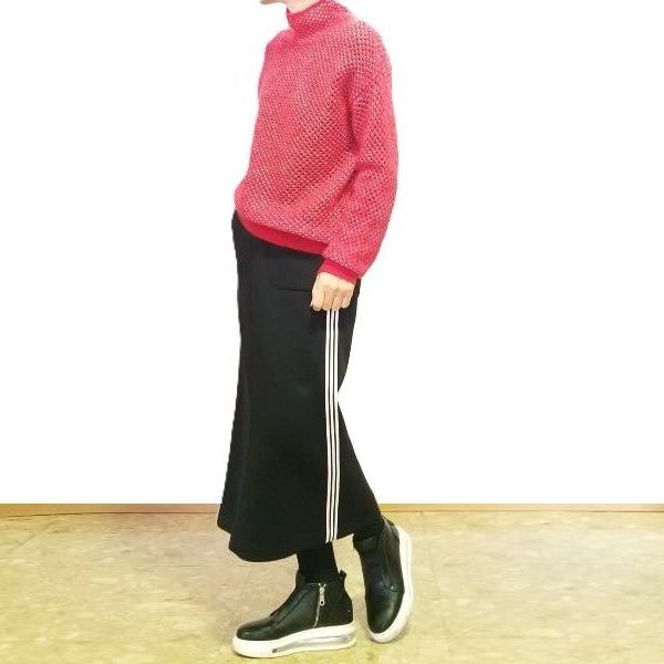 BLUE FRONCEの定番シルエットに脇ラインをプラスして、綺麗めスポーティに仕上げた、ダンボールニットのロングスカートです。