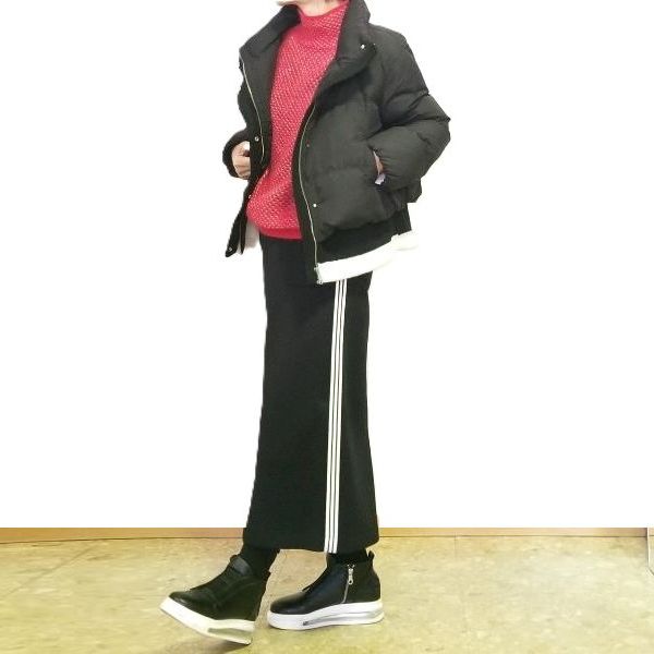 綺麗めスポーティがちょうど良い ダンボールニットの脇ラインスカート&50代からのコーデ