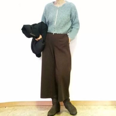 シンプルで暖かい♪ネイビーのクロップドワイドパンツ&50代からのコーデ