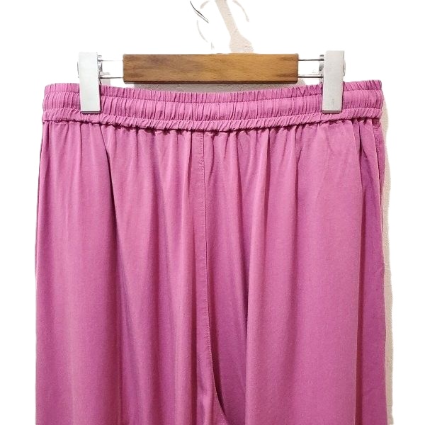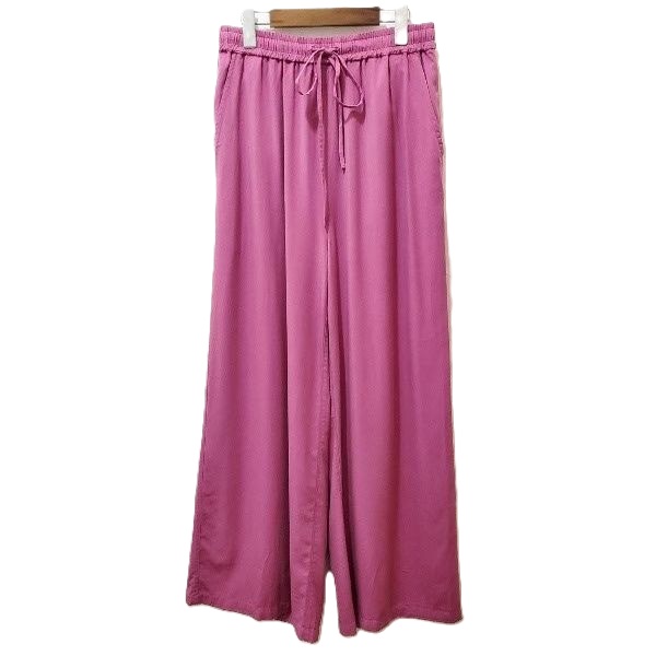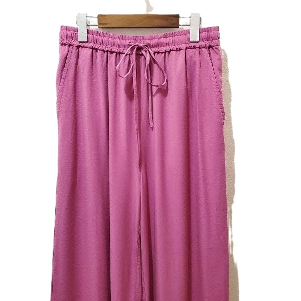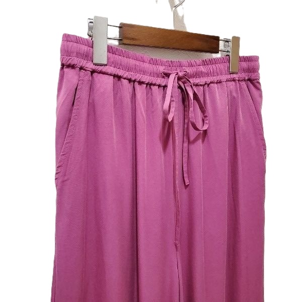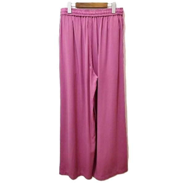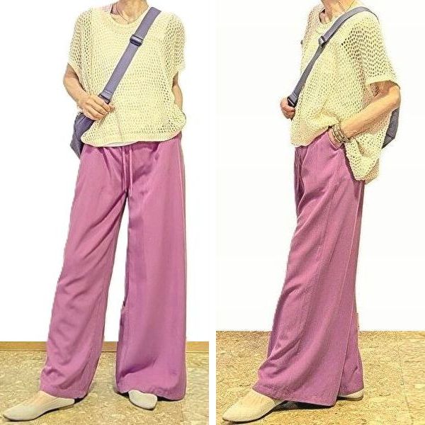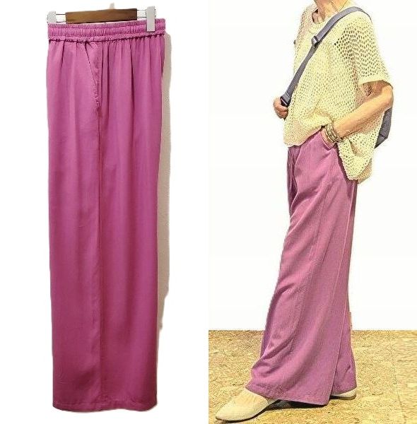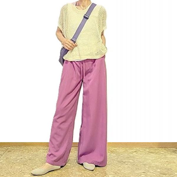 大人のピンクは潔く、マゼンダピンクのとろみワイドパンツ