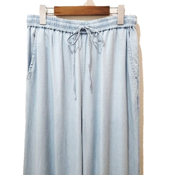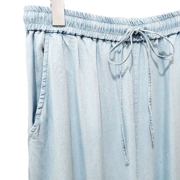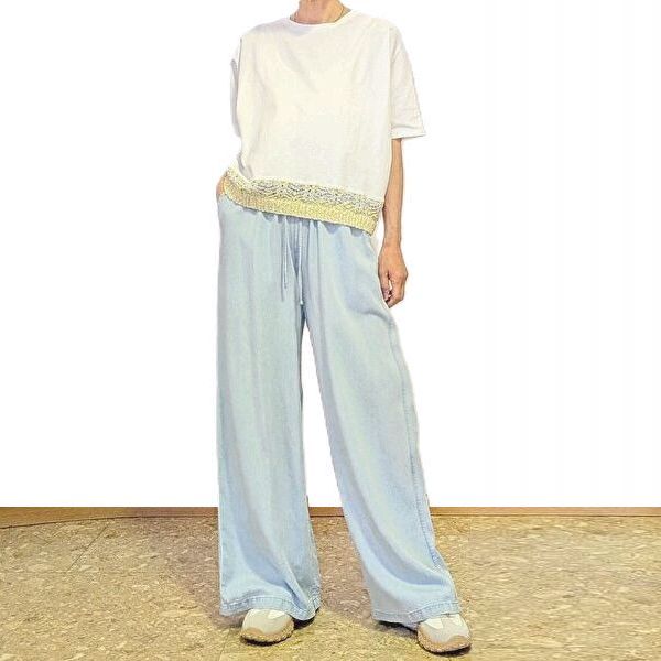 セルロースデニムの落ち感を活かした、分量たっぷりドロストワイドパンツです。