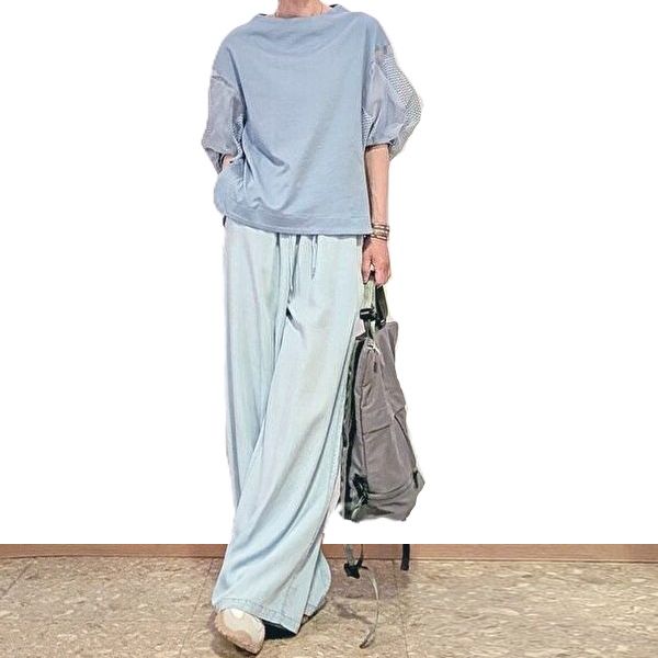 動く度に揺れる柔らかな落ち感が涼し気な、大人のドロストパンツです。