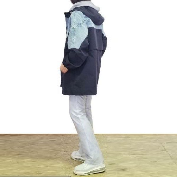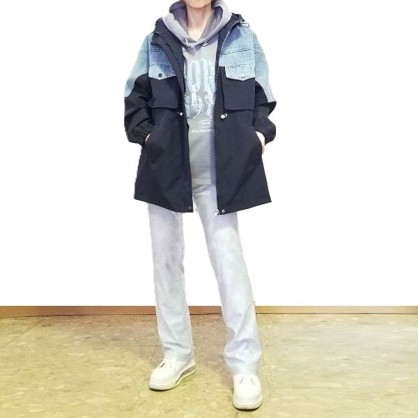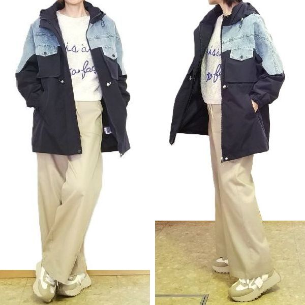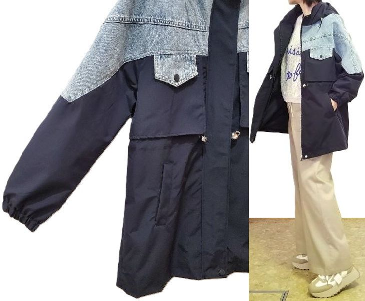 デニム切替えの元気なコートは