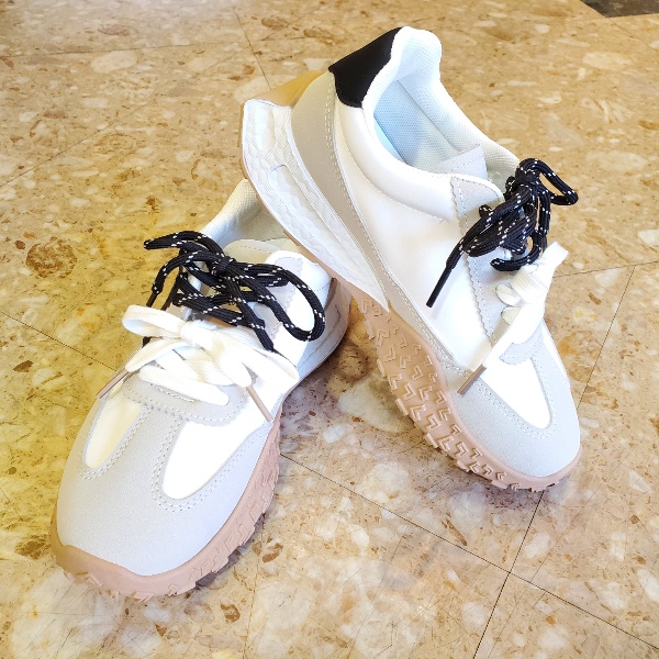 大人の女性もこれなら取り入れられると思えるような、上品でちょっとアクティブなスニーカーです。