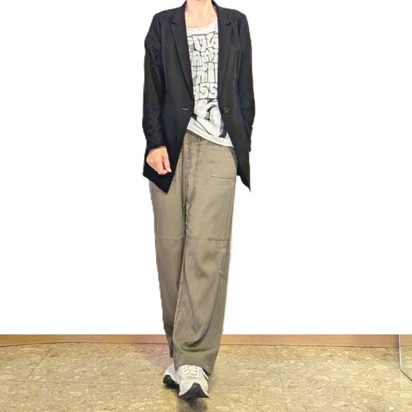 50代からのコーデ♪黒いジャケットとパラシュートパンツ&胃が痛い