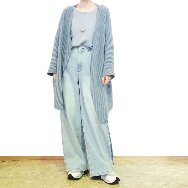 50代からのコーデ♪くすみブルーのニットとウォッシュデニムのワントーンコーデ&機種変更