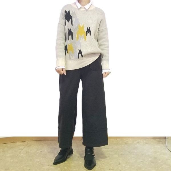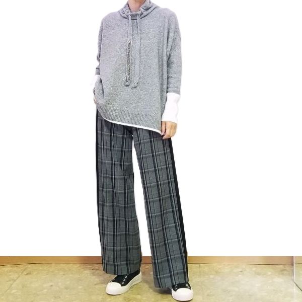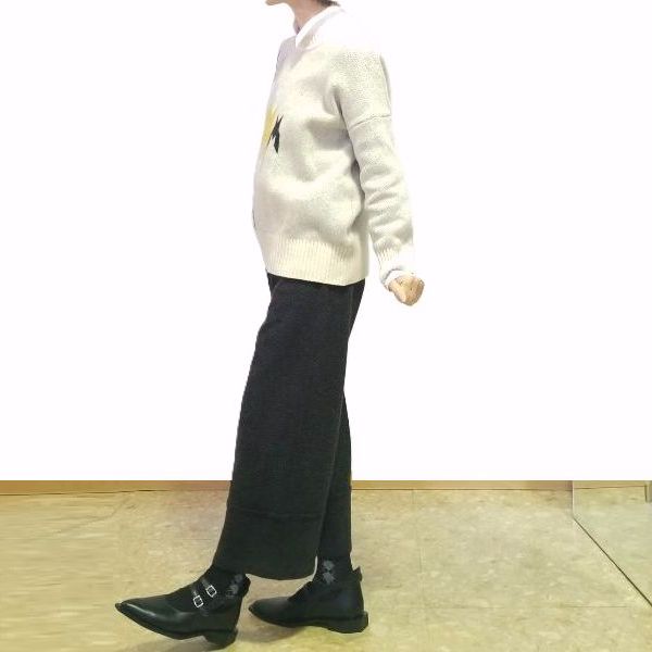 ゆったりニットにチェックのセミワイドを合わせて