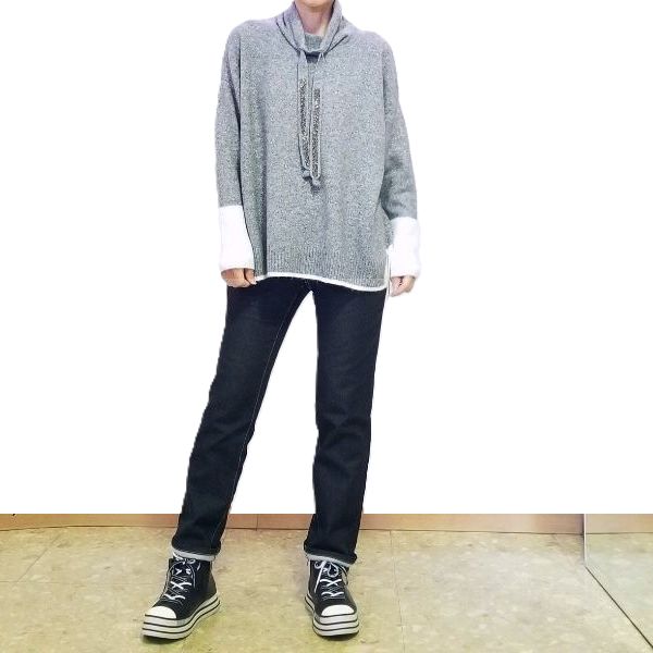 ニットのキラキラでマニッシュさを和らげて