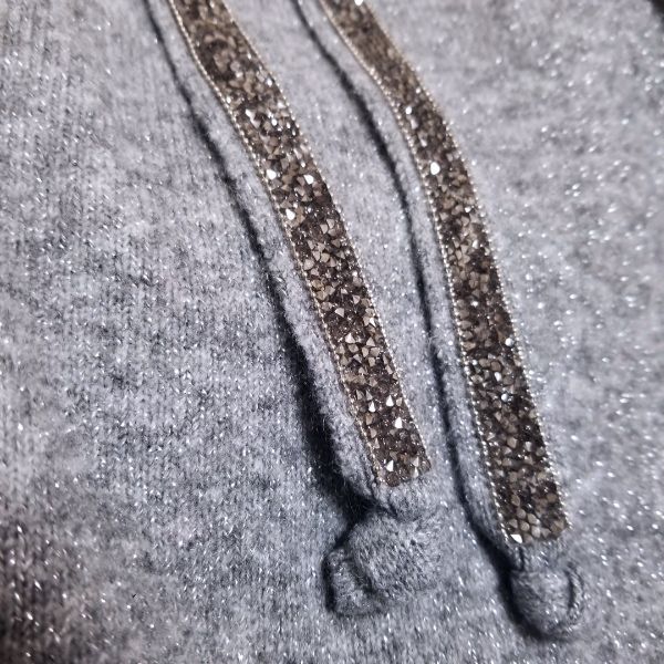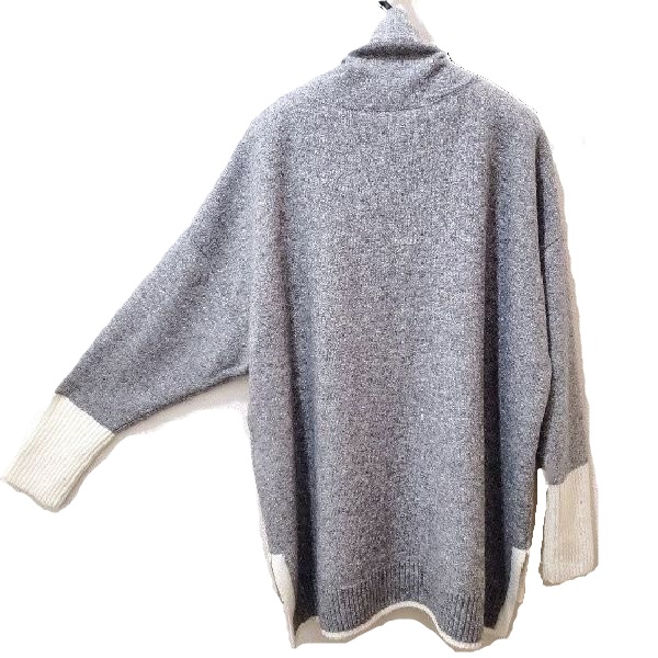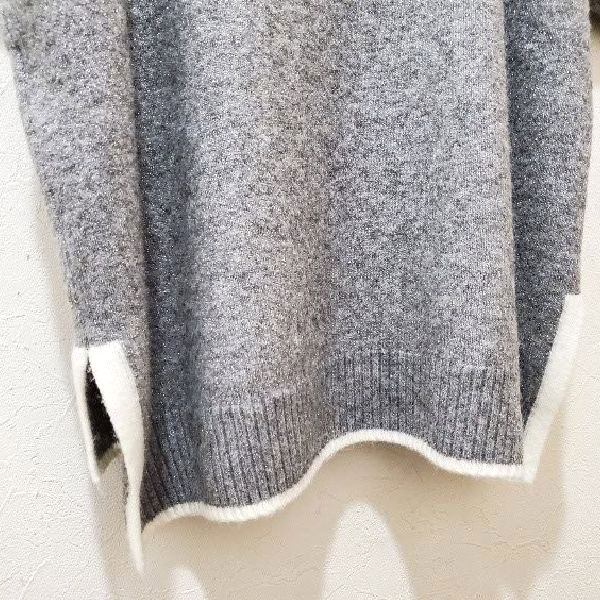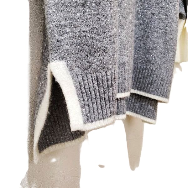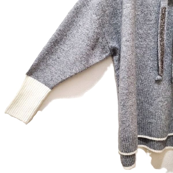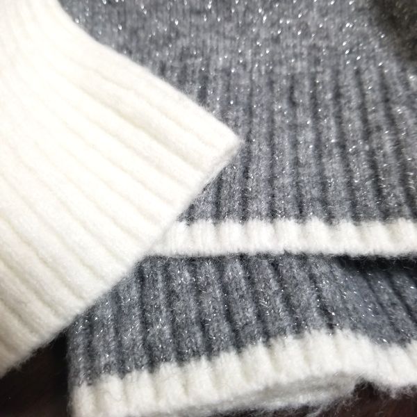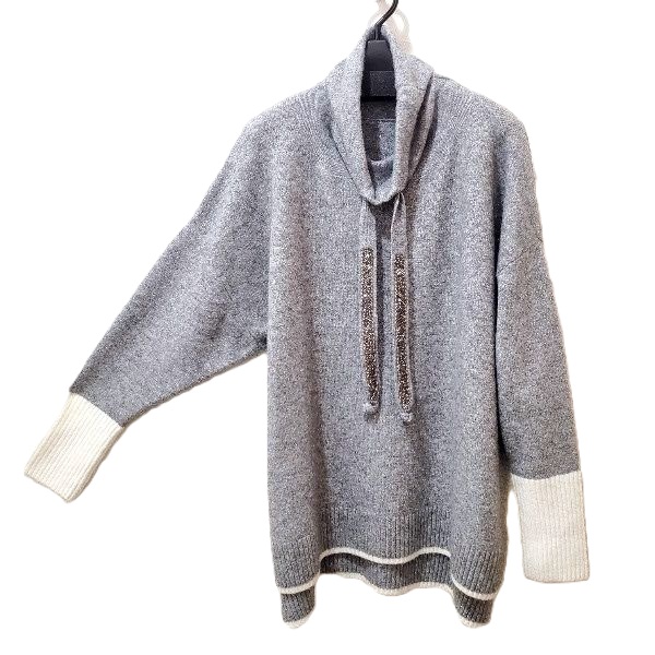 綺麗なラメのグレーにホワイトの配色が映える、キラキラストーン付きのロングニットプルオーバーです。