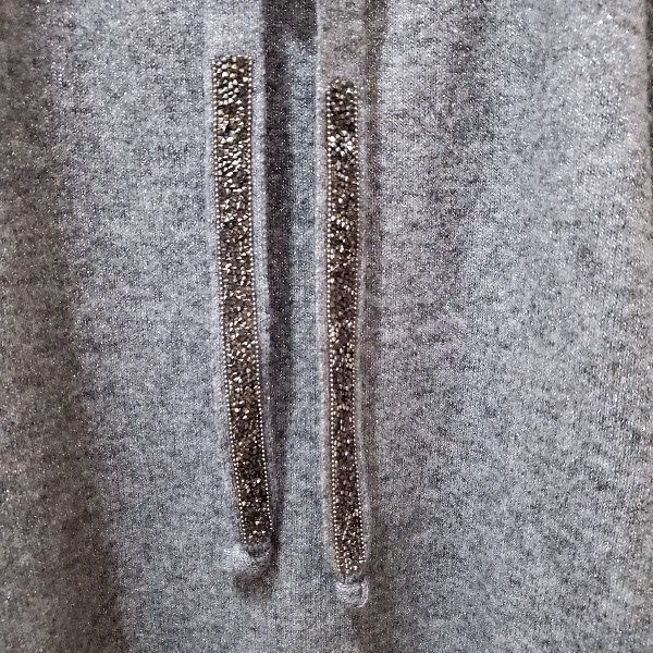 キラキラストーンのストリングがアクセントになった、ゆったりロング丈のプルオーバーです。