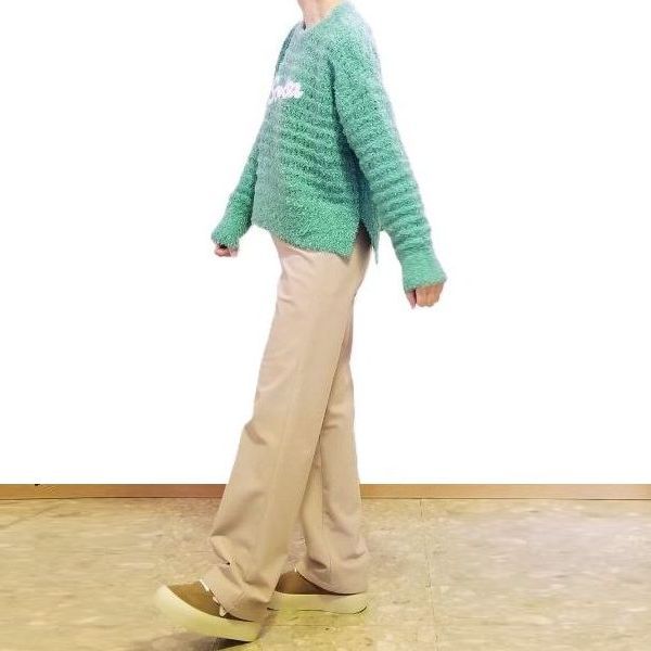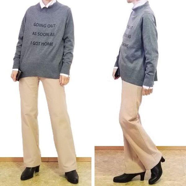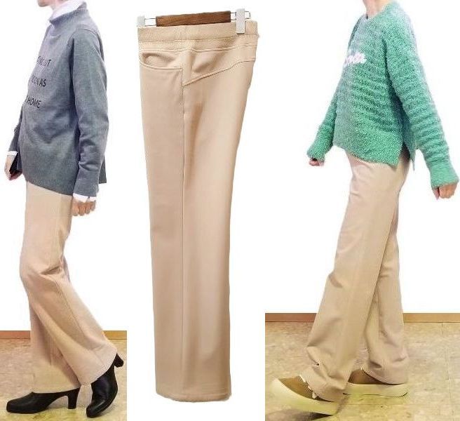 今日は、ストレートパンツは38サイズのウエストをつまんで、ワイドパンツは36サイズ を着用しています。