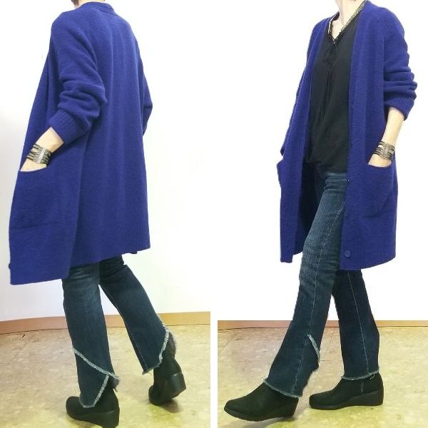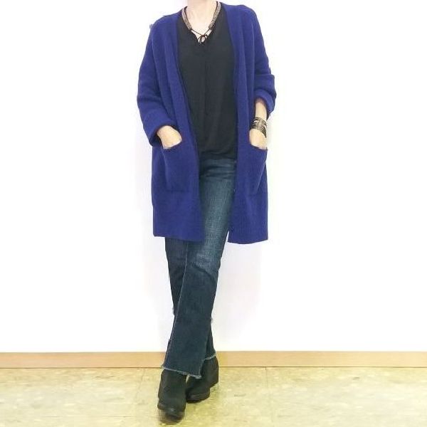 明るいブルーが映えるコットン別珍のワイドパンツ & 50代からのコーデ
