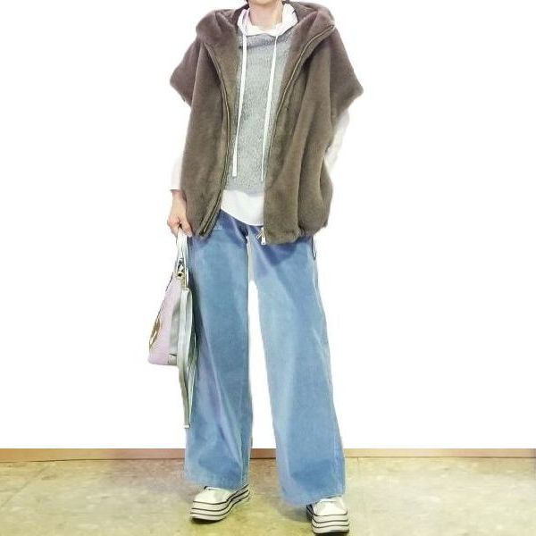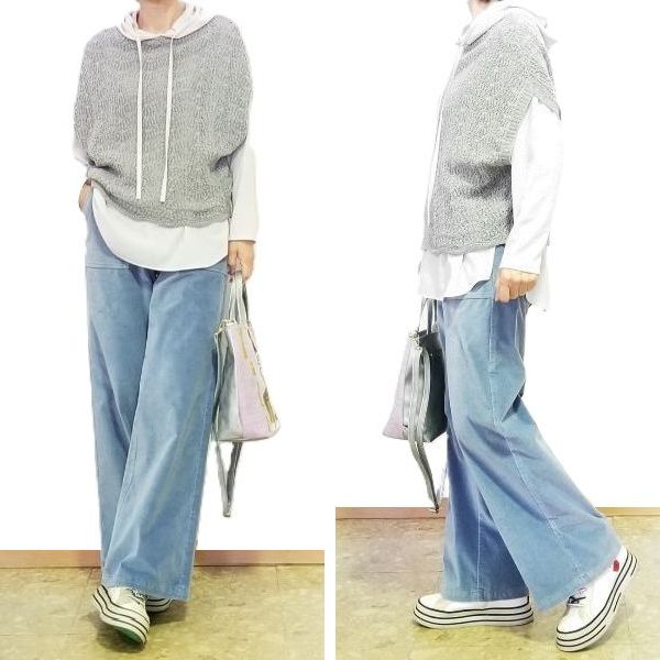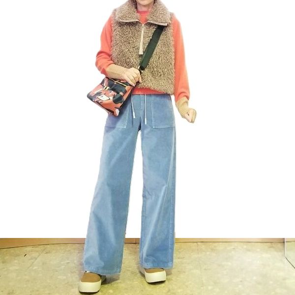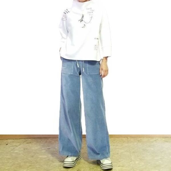本日は、明るい綿別珍のワイドパンツをご紹介させて頂きます。