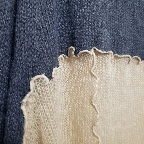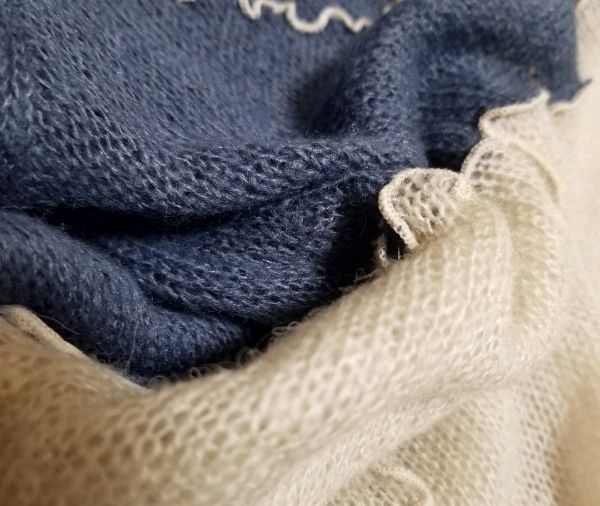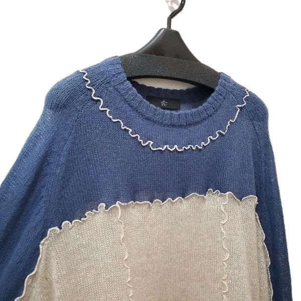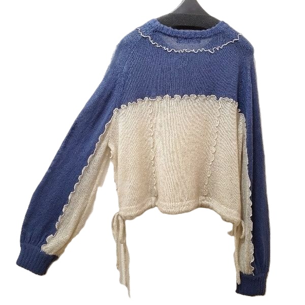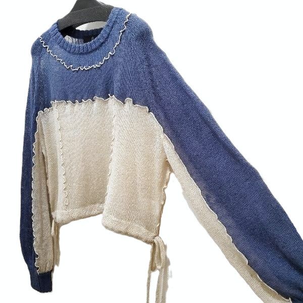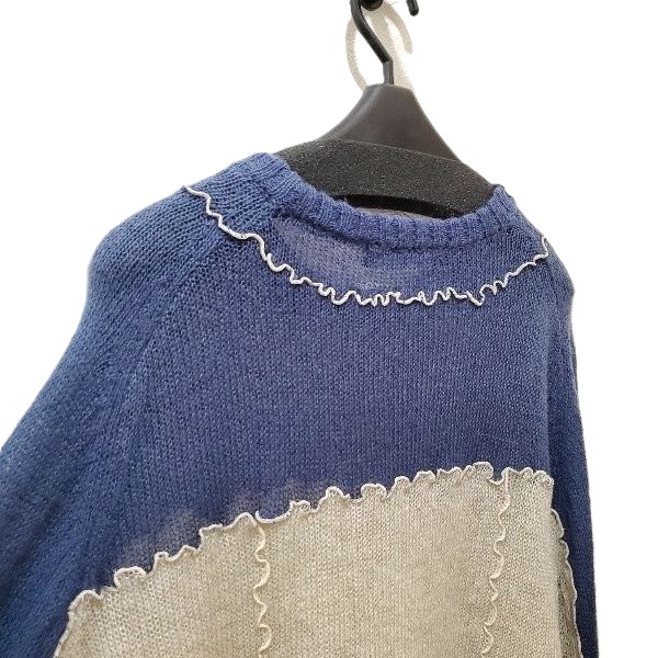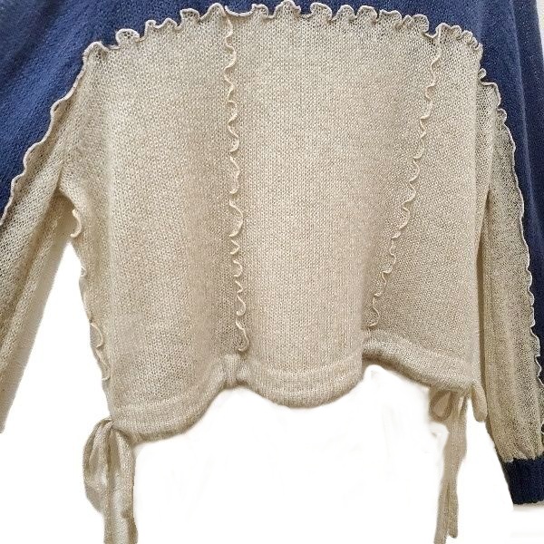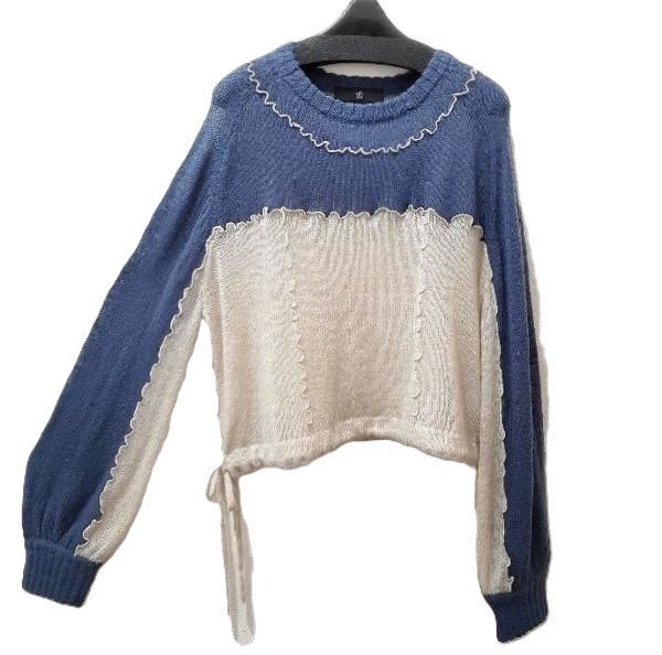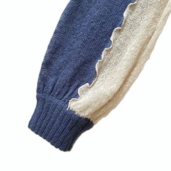 ブルー×ライトベージュの軽やかニットプルオーバー