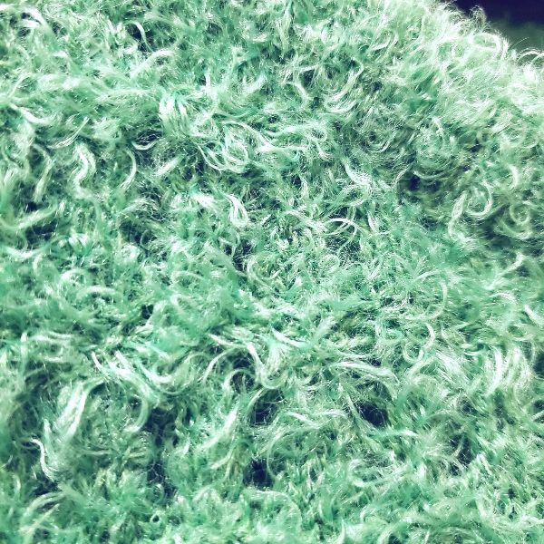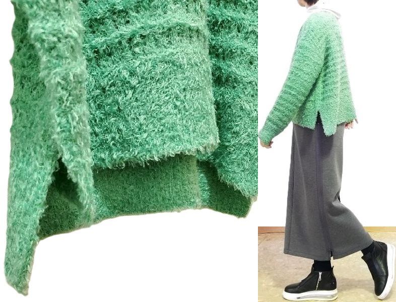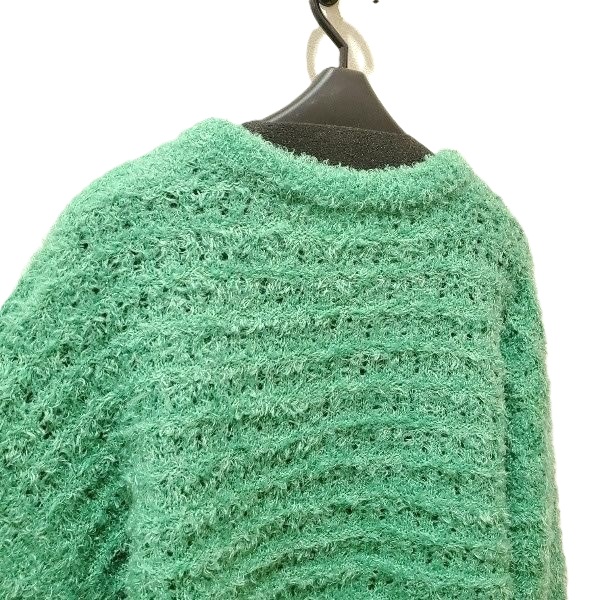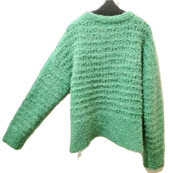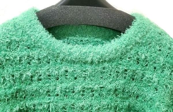 フェザーヤーンのふんわり感に相良刺繍のポコポコの質感を乗せた、ミントグリーンのプルオーバーです。