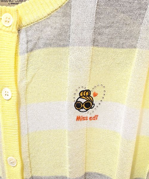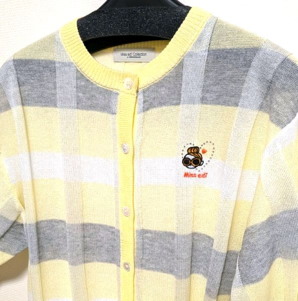 爽やかなレモンイエローのチェックに胸元の小さなエディちゃんが目を引く、サマーニットのカーディガンです。