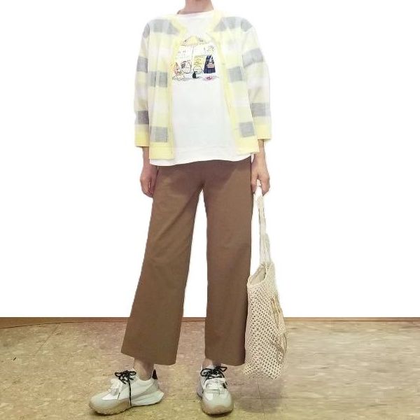 爽やかなレモンイエローのチェック柄カーディガン♪人気のエディちゃんをコーディネート