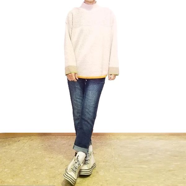 ゆったりニットとスリムなデニム