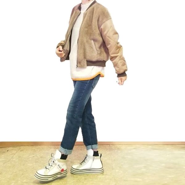 ふんわりあったかブルゾンから覗く