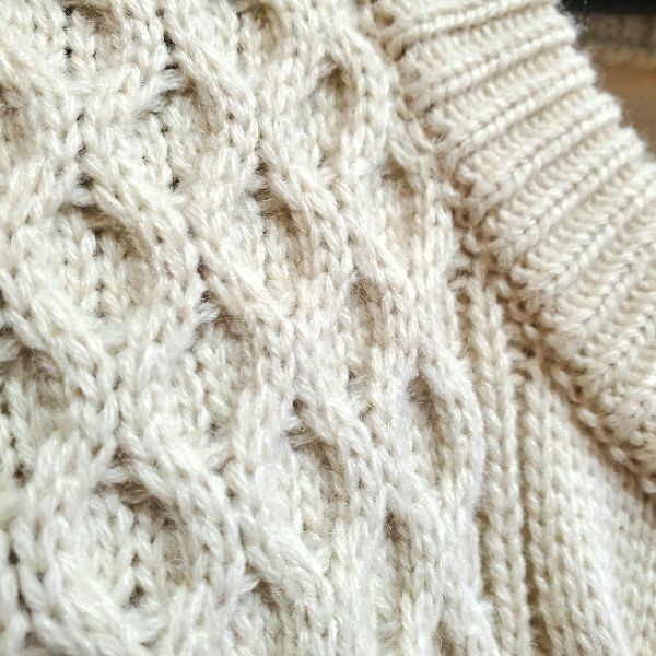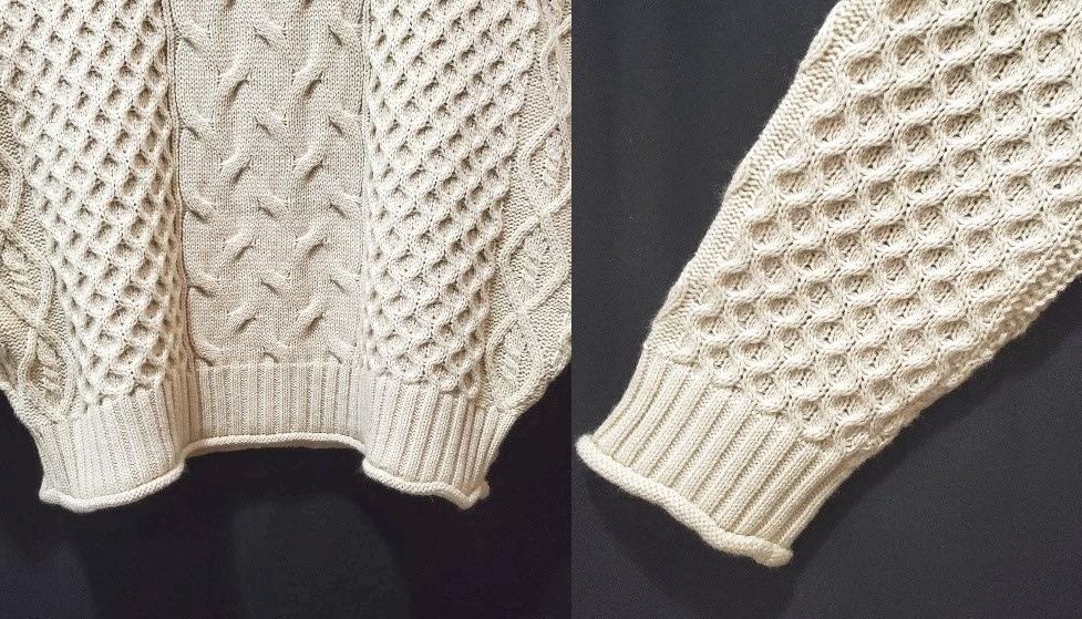数種のケーブル編みを組み合わせ存在感たっぷりに仕上げた、手の込んだ一着です。