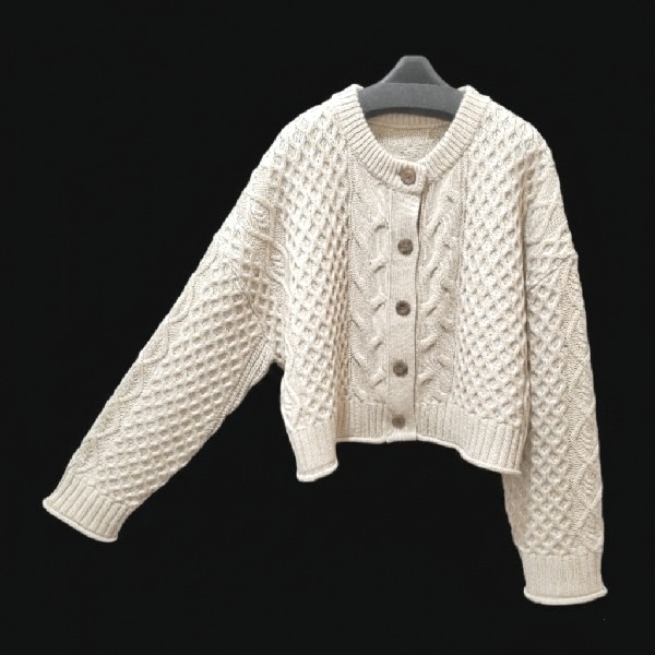 本日は、ケーブル編みのショート丈カーディガンをご紹介させていただきます。
