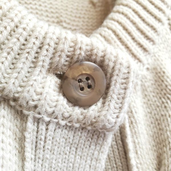 流行に左右されない「ブラウンの釦×ローゲージのケーブル編み」