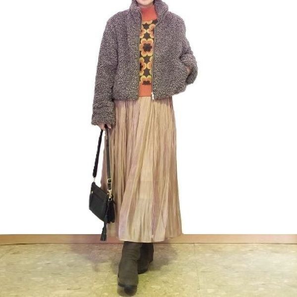 軽くて暖かい大人のモコモコ♡モカブラウンのプードルファーショートコート&50代からのコーデ