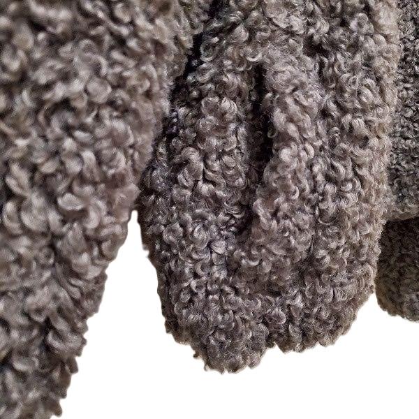 くるくるもこもこ、とても可愛いプードルファーのショートコートです。