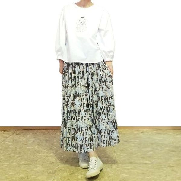 前回の香水モチーフのトップスと合わせていた、こちらのプリントスカートです。