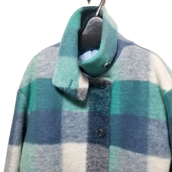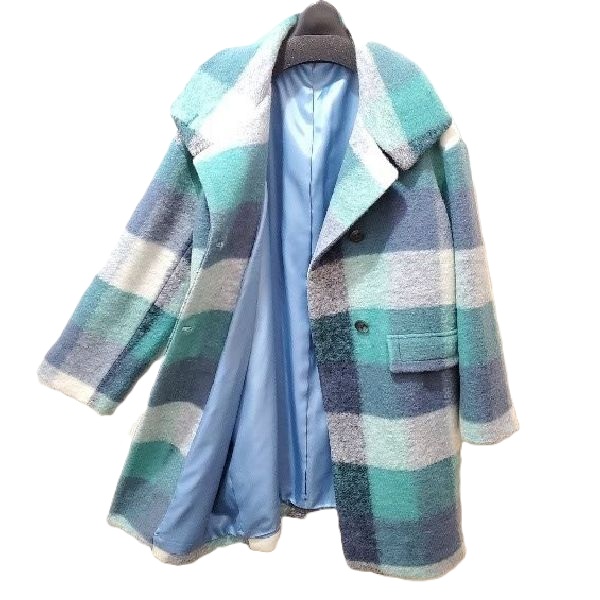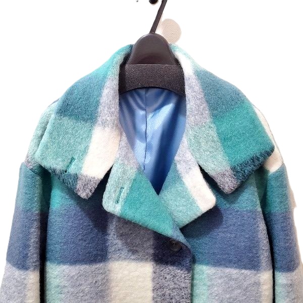 爽やかブルーのチェック柄コート