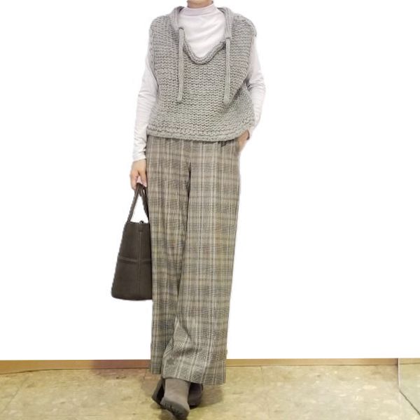 ざっくりベストとチェックのパンツで