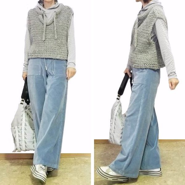 コットン別珍のワイドパンツと