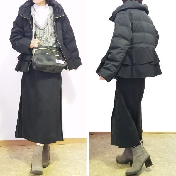 ラッフルヘムのダウンコートを羽織って