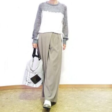 ふんわり優しいグレー×オフホワイトの癒しニット & 50代からのコーデ
